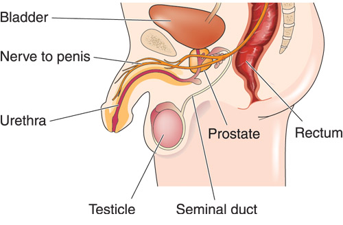 - Blood in urine or semen